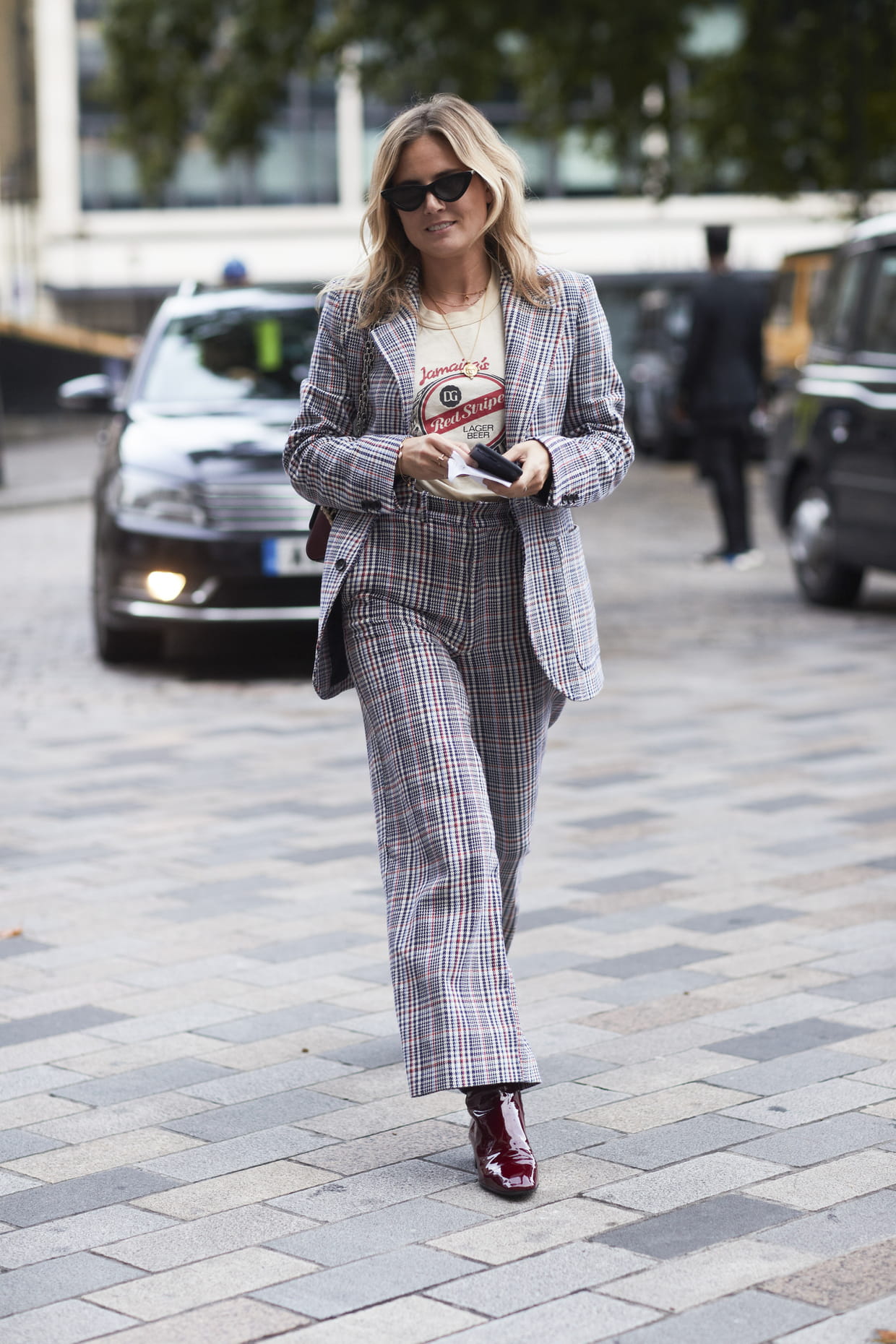 L'ensemble prince de Galles repéré aux abords des défilés printemps-été 2018 lors de la fashion week de Londres