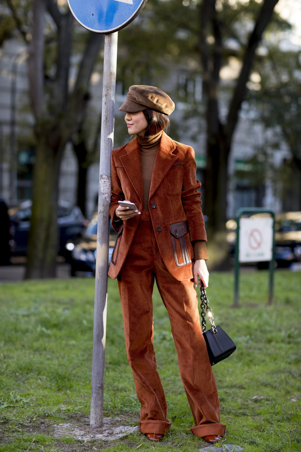 Le velours rétro repéré aux abords des défilés printemps-été 2018 lors de la fashion week de Milan