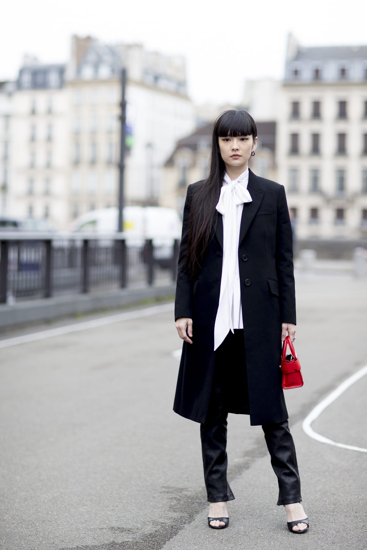 Le chemisier à lavallière repéré aux abords des défilés printemps-été 2018 lors de la fashion week de Paris