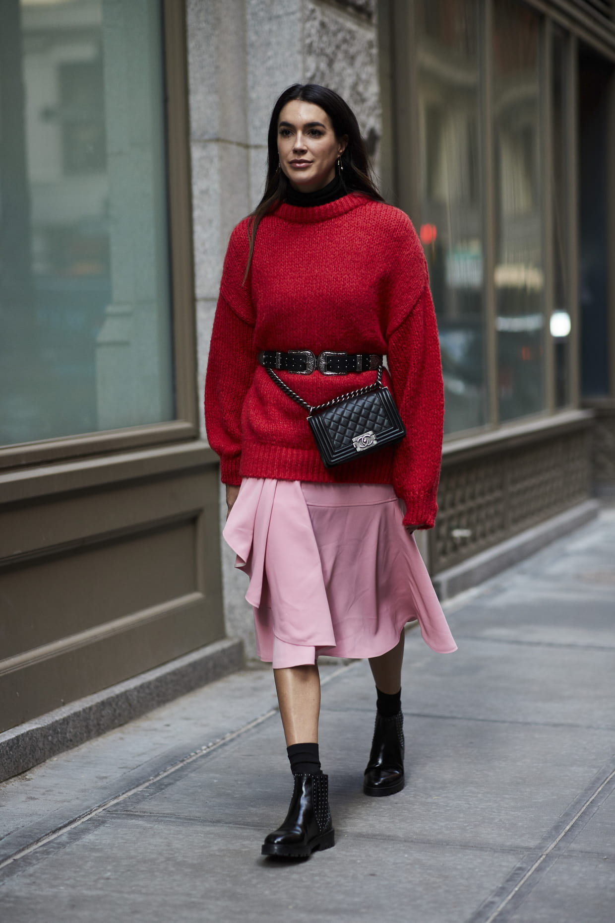 Le pull ceinturé à la sortie des défilés automne-hiver 2018-2019 à New York