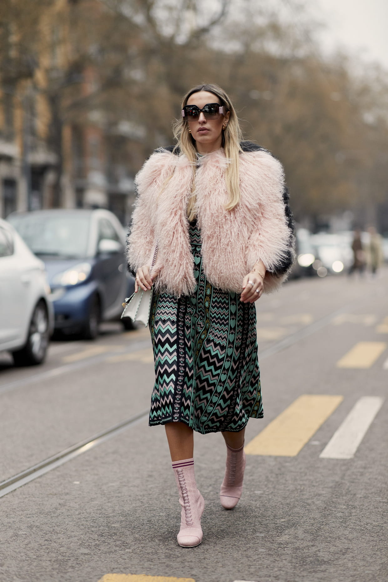 La chèvre angora  à la sortie des défilés automne-hiver 2018-2019 à Milan