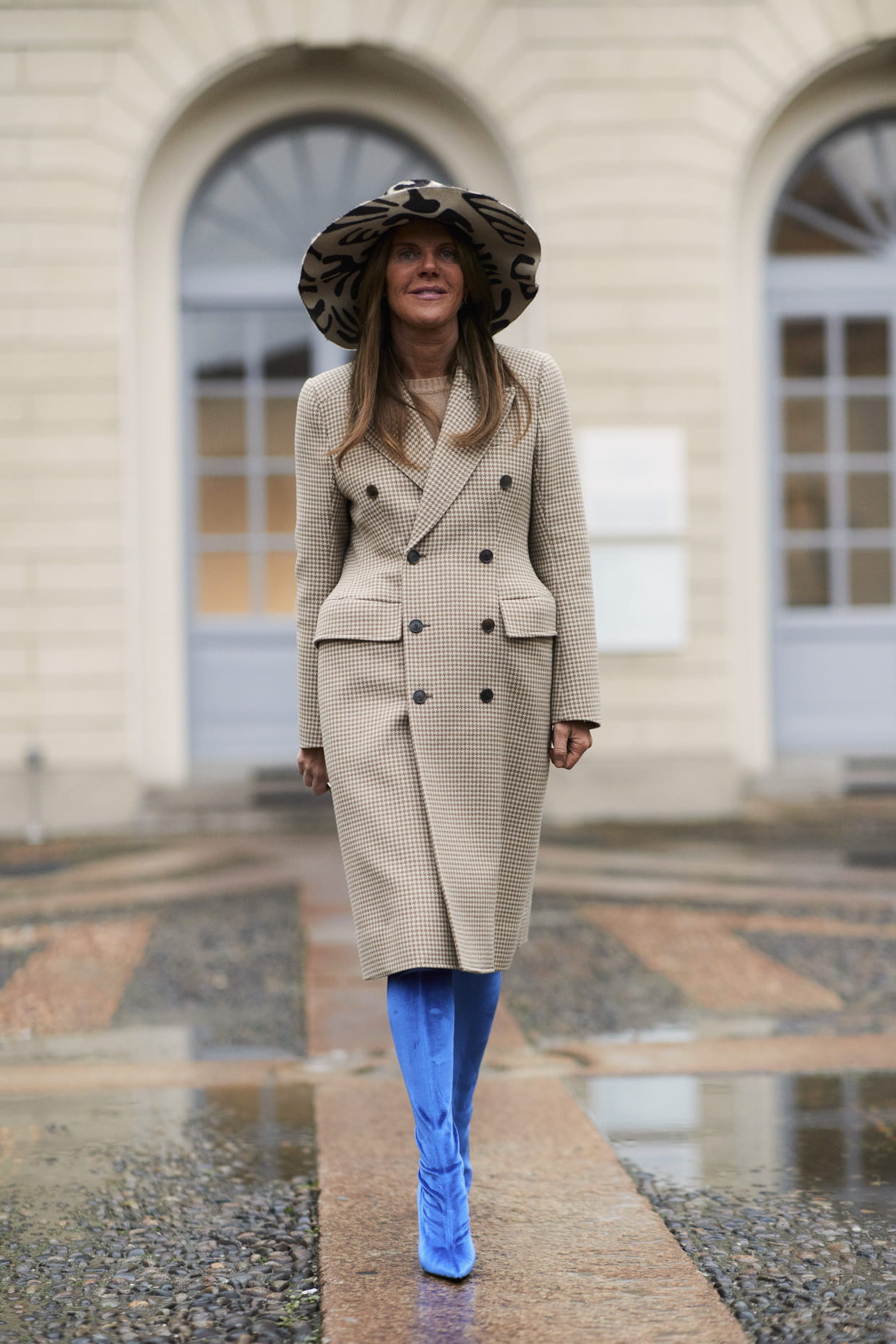 Le bleu ciel  à la sortie des défilés automne-hiver 2018-2019 à Milan