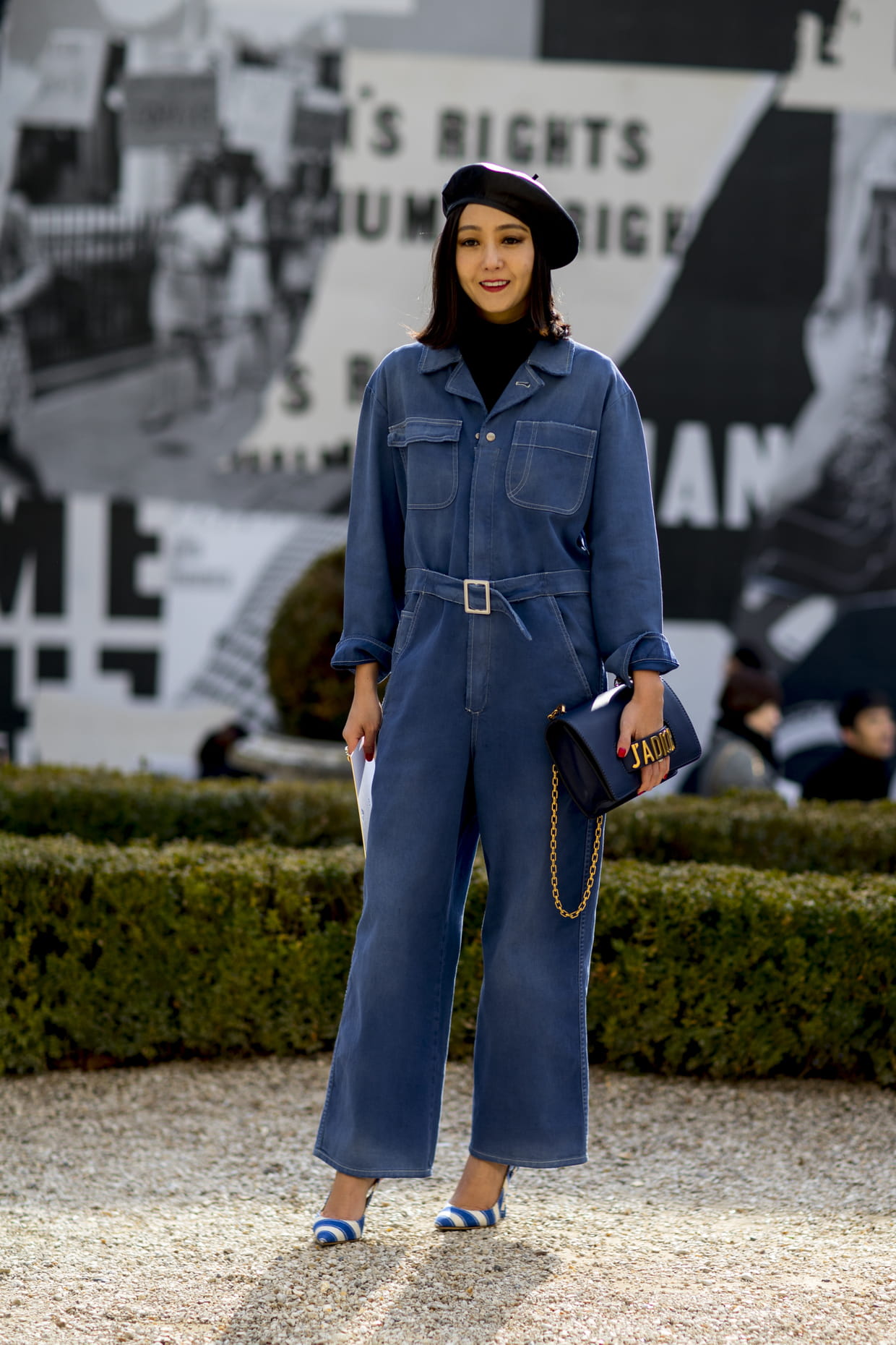 La combinaison pantalon  à la sortie des défilés automne-hiver 2018-2019 à Paris