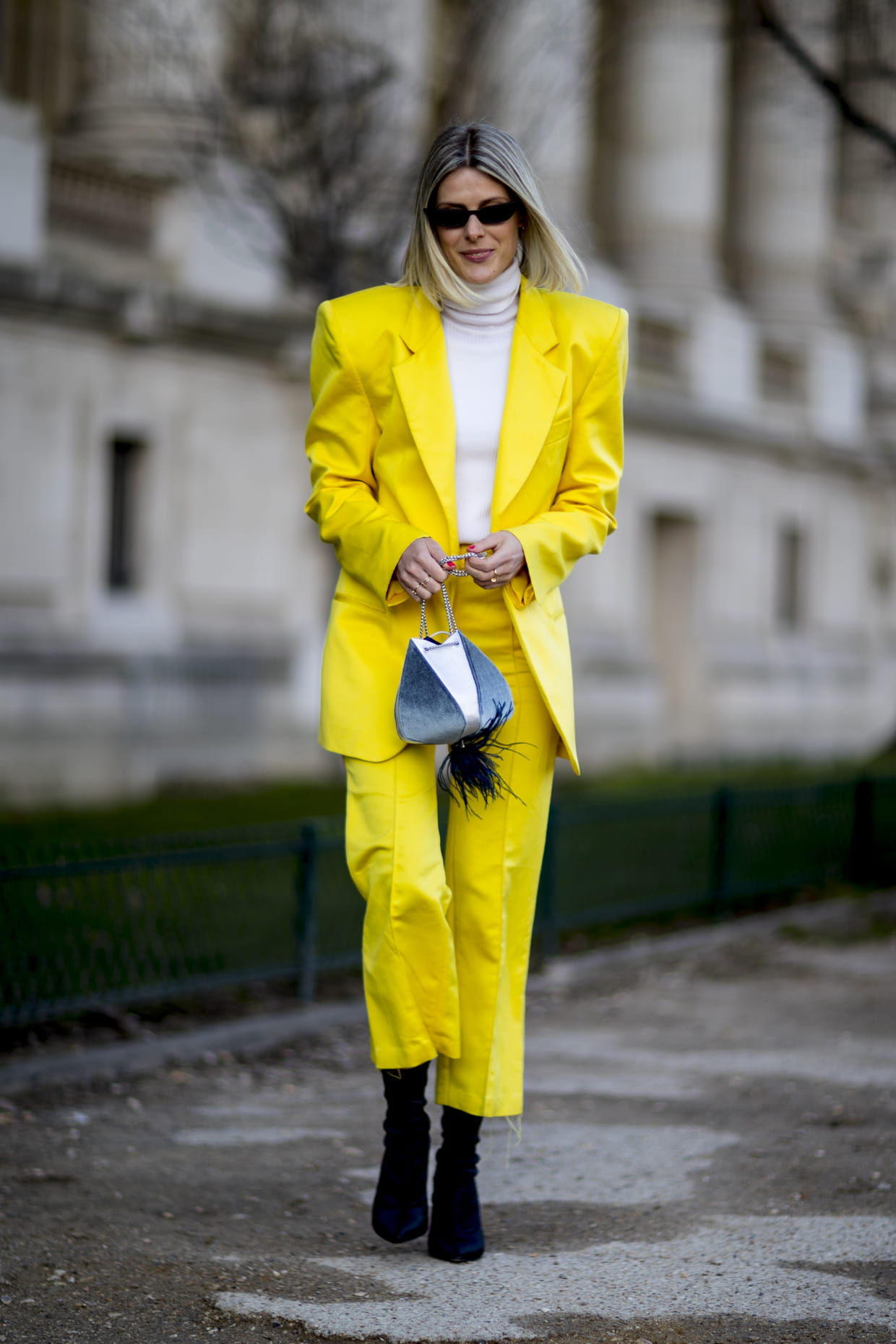 Les épaules tranchées à la sortie des défilés automne-hiver 2018-2019 à Paris