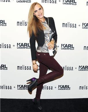 Toujours le sourire aux lèvres et l'esprit léger, Cara Delevingne donne décidément un nouveau souffle à la mode. C'est très certainement la raison pour laquelle la belle de 21 ans enchaîne les contrats, les défilés et les campagnes photo depuis deux saisons. La dernière en date ? Celle de l'association entre le grand Karl Lagerfeld et la marque de chaussures brésiliennes Melissa. La "it-girl" britannique en arbore d'ailleurs une paire aux talons façon cornet de glace. Elle opte pour une tenue en plein dans la tendance avec un pantalon bordeaux et un haut argenté de party-girl. Le détail chic ? Le sac Chanel noir et blanc, parfait pour un look "very smart".