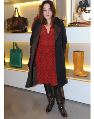 La fille de Josiane Balasko était présente pour le lancement du nouveau modèle de Gérard Darel, le "Simple Bag". Pour l'occasion, la jeune actrice était intégralement habillée par la marque. Elle avait choisi un trench double face, une robe imprimée fleurs et des bottes cavalières en cuir. Un joli look qui met en valeur la silhouette de Marilou !