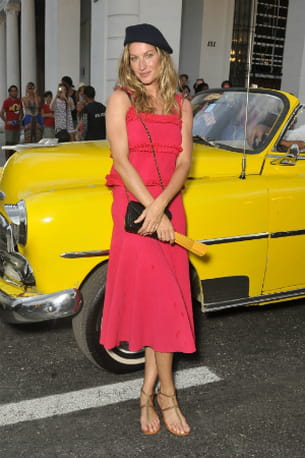 C'était l’événement de la semaine ! Chanel a fait défiler sa croisière 2016-2017 ce 3 mai en embarquant ses invités à Cuba. Parmi les happy few conviés à cette aventure ensoleillée, Vanessa Paradis, Cécile Cassel ou encore Caroline de Maigret ont admiré le spectacle dans des tenues léchées. Mais c'est sous le charme de la ravissante Gisele Bündchen que l'on tombe. Parée d'un ensemble framboise, le mannequin star a charmé l'assemblée. Son top gaufrés rehaussé de discrets froufrous se marie parfaitement à la jupe assortie. La longueur midi découvre les chevilles de la belle qui avait habillé ses pieds de spartiates dorées très fines. Du côté des accessoires, l'égérie de la griffe joue la carte de l'originalité avec un béret noir à la Che Guevara et un éventail lumineux. Le mini sac à main noir matelassé vient quant à lui ajouter sa touche classique à la tenue. Une jolie invitation au voyage.