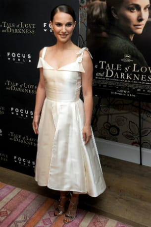 Pour la première à New York de Une histoire d'amour et de ténèbres, la solaire Natalie Portman se devait d'être à la hauteur niveau look. En effet, à la fois réalisatrice de son tout premier film et tenant le premier rôle féminin de ce même long métrage, l'actrice avait tous les regards braqués sur elle. Toujours gracieuse, élégante et sans fioriture, miss Portman ne nous a pas déçu. Et en parfaite égérie Christian Dior, la jeune maman était toute de CD vêtue. Des fines sandales argentées à talon et une boucle d'oreille Dior Tribale à l'oreille droite étaient les seuls accessoires de sa tenue : un choix très bien vu puisque la robe évasée couleur crème en satin, pièce maîtresse de la silhouette, se suffisait largement à elle-même. Raffinement et rétro en puissance avec cette toilette qui oscillait entre la robe de ballerine et la robe de mariée années 50. Avec un tel port de tête, Natalie Portman ne pouvait pas mieux choisir.