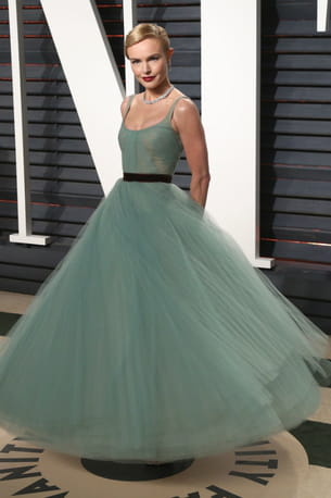 L'actrice américaine Kate Bosworth était parfaite et aussi légère qu'une plume devant le photocall à la soirée Vanity Fair Oscar Party le 26 février 2017 à Los Angeles. Dans sa robe tutu très évasée en tulle vert d'eau, marquée à la taille par une bande de velours noir, la jeune femme resplendissait avec une simplicité et une efficacité rare. La vaporeuse création signée J. Mendel automne 2017 est sans doute la robe de princesse que toutes les petites filles ont un jour rêvé de porter. Avec la grâce de son port de tête et la simplicité de ses accessoires et de son beauty look, Kate nous a ébloui.