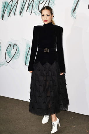 A l'occasion de la fête d'été organisée par Chanel le 28 juin, la chanteuse Rita Ora était vêtue d'une tenue couture des plus élégantes signée Chanel collection métiers d'art 2016-2017. La pièce maîtresse de cette silhouette est évidemment l'incroyable robe formée d'un bustier aux larges épaules en velours noir, ainsi que d'un jupon 7/8ème en tulle surpiqué de petits nœuds ton sur ton. Pour accessoiriser cette pièce, la belle a opté pour une ceinture, en velours également, à boucle carrée, des richelieu en cuir blanc, ainsi que des bijoux de tête. Par cette prouesse stylistique, Rita fait rayonner son Ora.