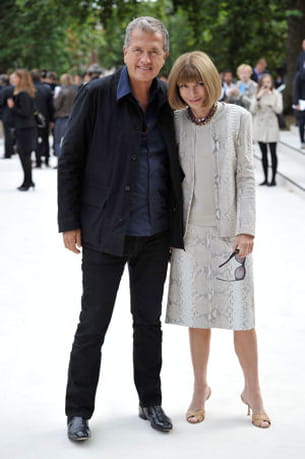 La papesse de la mode a retrouvé le photographe avec qui elle a déjà collaboré pour Vogue pour le défilé Burberry Prorsum. Anna Wintour, en tailleur python, semble ravie de ses retrouvailles. Et quand celle qui a inspiré Le Diable s'habille en Prada sourit, c'est plutôt de bonne augure pour le défilé qui l'accueille.