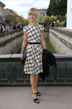 Marina Foïs nous épate un peu plus à chaque fois. L'ex-membre des Robin des Bois n'a plus à démontrer son sens du style et de la féminité avec cette robe en crêpe de soie à l'imprimé graphique noir Dior.