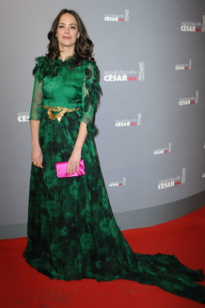 Toujours dans la tendance, l'actrice de The Artist a fait une apparition remarquée en Giambattista Valli lors de la 38ème cérémonie des Césars à Paris. Bérénice Bejo a opté pour une robe en soie vert émeraude à l'imprimé fleuri, ornée d'une sublime ceinture dorée... Un style romantique que l'on n'aurait cependant pas assorti avec une pochette satinée rose bonbon !