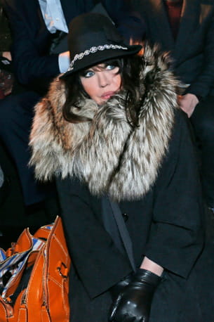 Immense col en fourrure, chapeau noir, It bag orange.... Difficile de passer à côté de la star sans la remarquer ! Isabelle Adjani était assise au premier rang du défilé Etam aux côtés des autres célébrités venues pour assister à la soirée évènement.