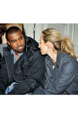Kanye West discute avec Alexandra Golovanoff avant le défilé Anthony Vaccarello prêt-à-porter automne-hiver 2013-2014 © BFA/SIPAUSA/SIPA