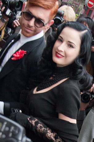 La star des effeuilleuses est une incontournable des défilés et particulièrement de celui de Jean Paul Gaultier pour qui elle a joué les mannequins surprise. Dita Von Teese n'était pas au bras de Louis-Marie de Castelbajac mais toute de noir vêtue comme on a l'habitude de la voir. La jeune femme était très émue de l'hommage rendue à la chanteuse Amy Winehouse.