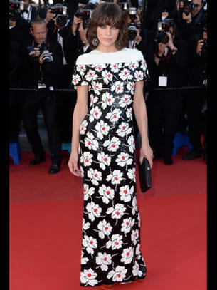 La robe près-du-corps entièrement recouverte de sequins et aux motifs floraux, il fallait oser ! L'actrice et mannequin Milla Jovovich n'a pas eu peur de se jeter à l'eau, pour le plus grand bonheur de nos yeux. Bravo !