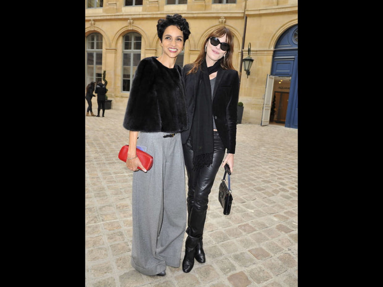 Les deux amies (Farida Khelfa a été la témoin de Carla Bruni à son mariage et vice et versa) se sont offert une petit sortie mode avec le défilé Schiaparelli. Il faut dire que la première est l'ambassadrice de la maison de couture. Reste à savoir si on préfère l'élégance chic de Farida ou l'esprit rock du look de Carla.