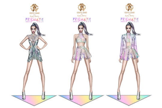 A l'occasion de sa tournée mondiale "Prismatic World Tour" qui débutera le 7 mai 2014, Katy Perry portera des créations signées Roberto Cavalli dont voici les croquis.