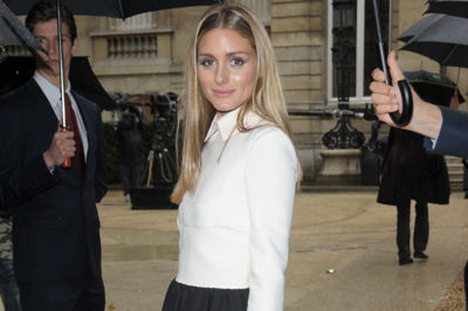 Bravant la pluie avec classe, l'égérie de la marque Mango a su nous donner une belle leçon look des plus classes. C'est un petit rayon de soleil qu'Olivia a su donner mercredi 9 juillet 2014 lors du défilé haute couture de la maison italienne.