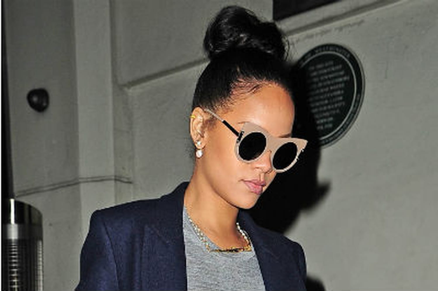 Mesdemoiselles, mesdames, réjouissons-nous, pour une fois il nous sera possible de nous inspirer fortement, voire de copier, le look de Riri qui, cette fois-ci, s'est tournée vers une tenue casual et sobre moins axée "showbiz excentrique" que d'habitude. En effet, ce soir-là, devant le Hakkasan à Londres, Rihanna optait pour un jean bleu slim 7/8ème troué aux genoux, certes, mais pas vulgaire. En haut, la chanteuse portait un top très basique en coton gris, ras-le-cou, rentré dans l'avant de son pantalon. La pièce clé de ce look décontracté est le, très tendance cet hiver, manteau structuré long et droit qu'elle a choisi bleu marine. Elle avait chaussée, pour l'occasion, des stilettos Louboutin nude pointus très décolletés sur le dessus du pied : comble de l'élégance et de la féminité. Pas de bijou bling bling ni de coiffure déjantée ce jour-là pour la starlette : juste une discrète paire de boucles d'oreilles, un collier passe-partout et les cheveux tirés en chignon haut sur un bun, ce qui lui dégageait le visage tel un petit rat de l'Opéra. Seule petite touche un peu plus rock : Rihanna avait peint ses ongles d'un vert fluo, mais rien de choquant étant donné la sobriété des autres couleurs de cette fashion silhouette (au passage, vous aurez sans doute reconnu le beauty look qu'elle avait déjà l'avant-veille aux British Fashion Awards). Pour finir, la rédaction a complètement craqué pour les lunettes de soleil Stella McCartney "Oeil de chat plates" très originales portées par la star, qu'elle a su accorder à la couleur de ses escarpins.