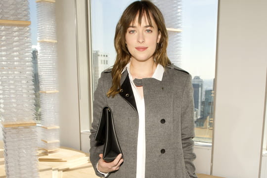 Encore récemment peu connue du grand public, Dakota Johnson a été révélée grâce à la sortie du film adapté du bestseller 50 nuances de Grey. Et visiblement, des projecteurs d’Hollywood aux podiums des défilés new-yorkais, il n’y a qu’un pas : la fille de Melanie Griffith a été aperçue en front row du show Boss Women, dans une ravissante tenue urbaine et élégante, composée de pièces de la marque. Elle a ainsi mixé une blouse blanche à un pantalon noir droit, qu’elle a féminisé avec des sandales à talon. Pour habiller le tout, elle a opté pour un manteau long gris chiné agrémenté de pattes sur les épaules et de boutons noirs ; ces derniers rappelant le revers dudit manteau. Pour garder ses affaires personnelles tout en apportant une touche chic à son look, elle porte une pochette en cuir à la main. Du côté de sa mise en beauté, point trop n’en faut : ses cheveux sont négligemment lâchés et sa frange effilée met ses sourcils épais et le bleu de ses yeux en valeur. D'ailleurs, ces derniers n’ont besoin que d’une pointe de mascara. Sur ses lèvres, un rose corail apporte un effet bonne mine. Avec un look comme celui-ci, on comprend comment elle a fait craquer Christian Grey sur le grand écran…