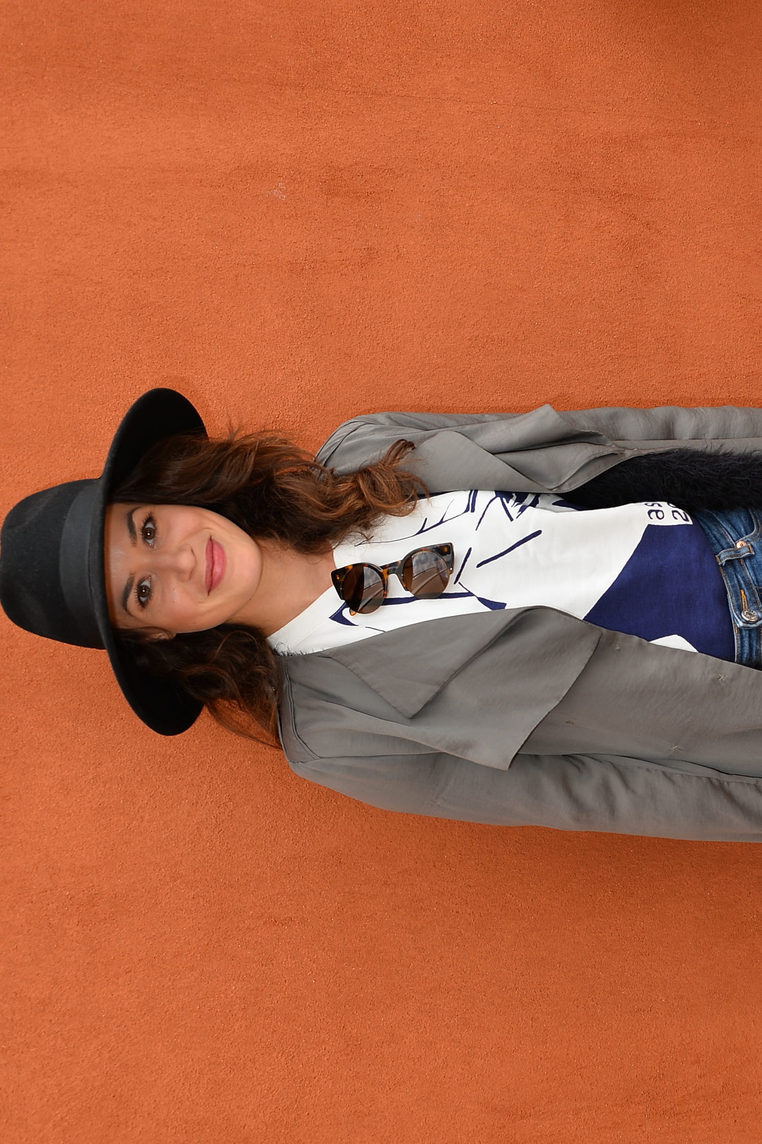 Le tournoi de Roland-Garros bat son plein et accueille chaque jour une multitude de spectateurs et célébrités venus assister aux matchs de tennis depuis les gradins. Le 1er juin 2015, c'est la comédienne Alice David, connue notamment pour ses rôles dans Babysitting, Les Profs ou encore la mini-série de Canal + Bref qui a été photographiée dans Le Village, fraîche et souriante. Pour la jeune femme de 28 ans, la météo changeante était l'occasion de porter un long pardessus fluide, idéal pour se couvrir avec style sans avoir trop chaud. Un fedora noir à bords larges était également de la partie, pour se protéger du soleil lors de ses rares apparitions, ou éviter les gouttes de pluie en cas de besoin. Pour le reste, jean slim, t-shirt à motif et nu-pieds composaient un ensemble simple mais efficace, laissant peu de place à la faute de goût et se fondant à la perfection avec son accessoirisation pointue de pièces phares de la saison printemps-été 2015. Cerise sur le gâteau, le sac shopping "Grand 3Jours" de Fendi en cuir de veau bicolore qui ponctuait le tout d'une note high-fashion qui n'aura pas échappé au regard affûté de toutes les amatrices de it-bags. Le petit détail qui fait toute la différence dans les tribunes de Roland-Garros 2015 !