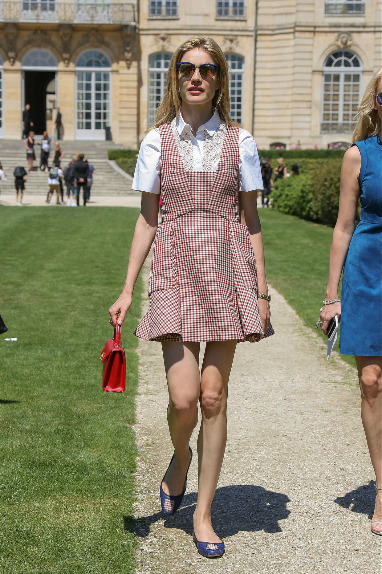 Natalia Vodianova jouait les belles des champs dans une robe rouge à carreaux, qui venait habiller une chemise blanche à manches courtes. Côét accessoires, un sac à main rouge venait contraster avec ses ballerines et ses lunettes de soleil bleues.