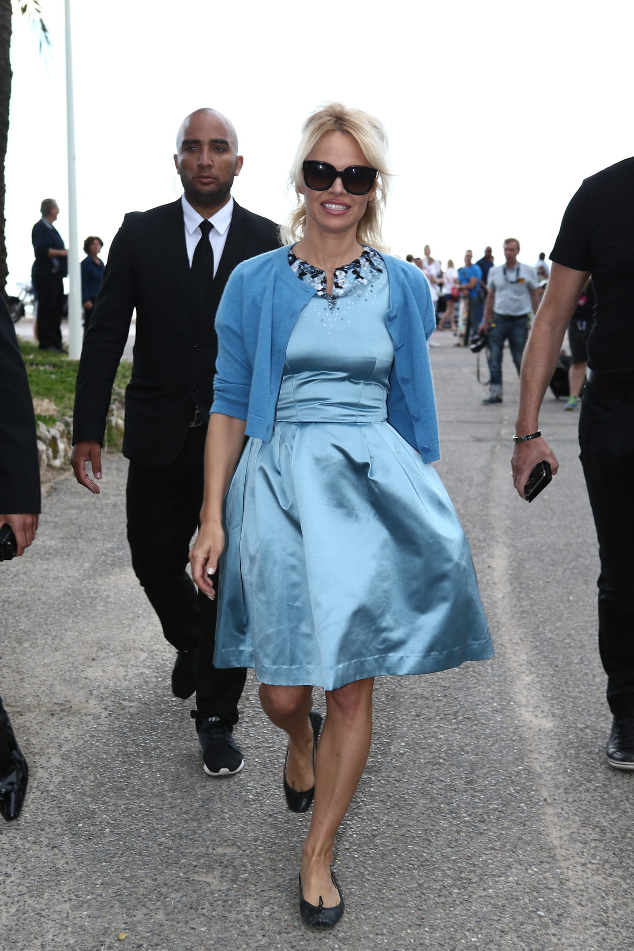 Pamela Anderson en robe Ingie Paris au Festival de Cannes 2016 le 14 mai