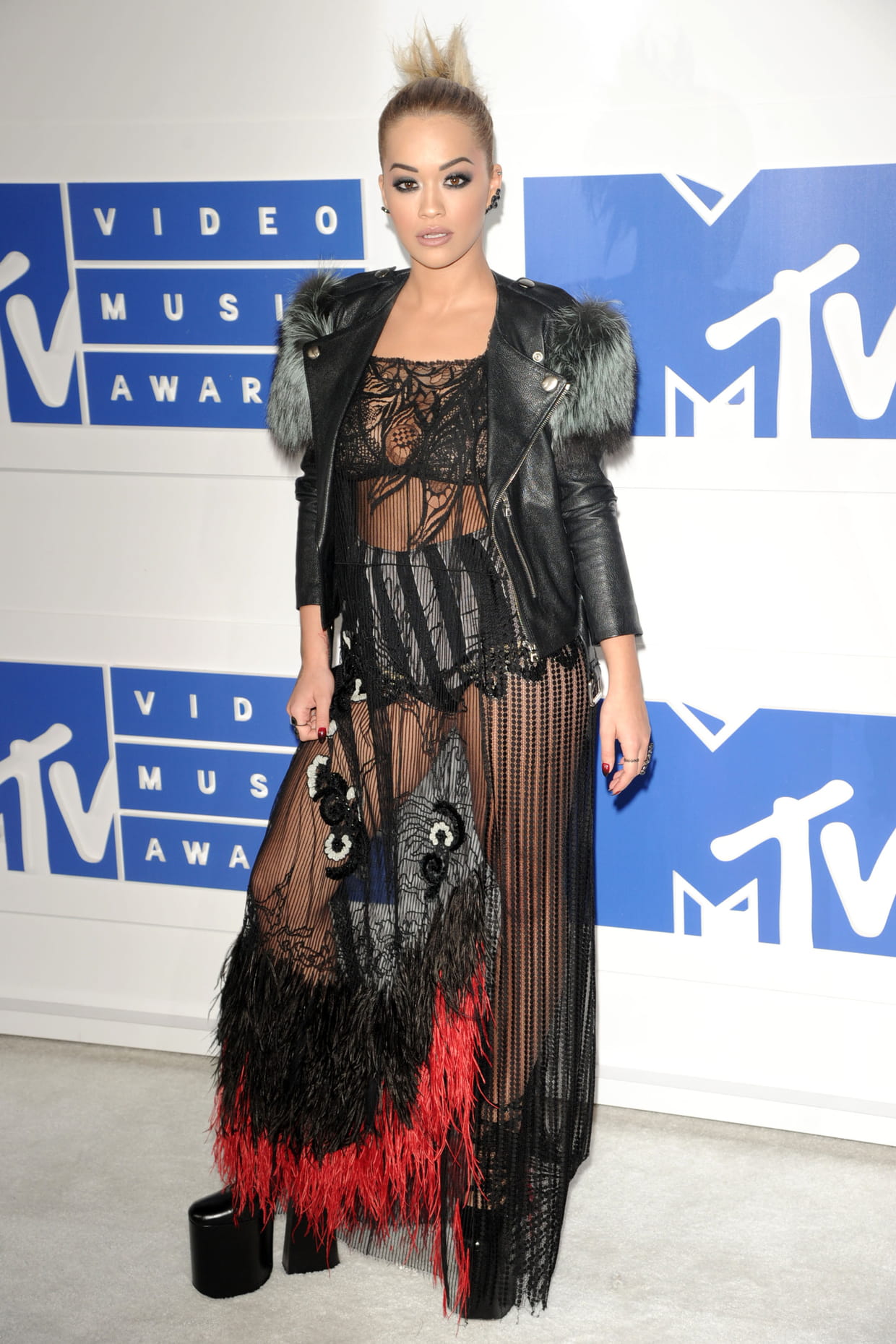 La chanteuse Rita Ora sur le tapis rouge des MTV Music Awards 2016