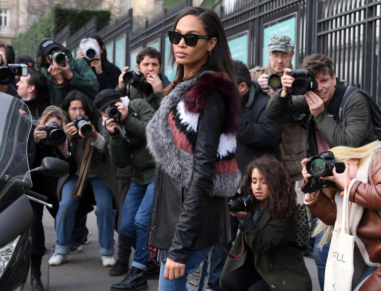 Joan Smalls au défilé Miu Miu automne-hiver 2017-2018 le 7 mars à Paris