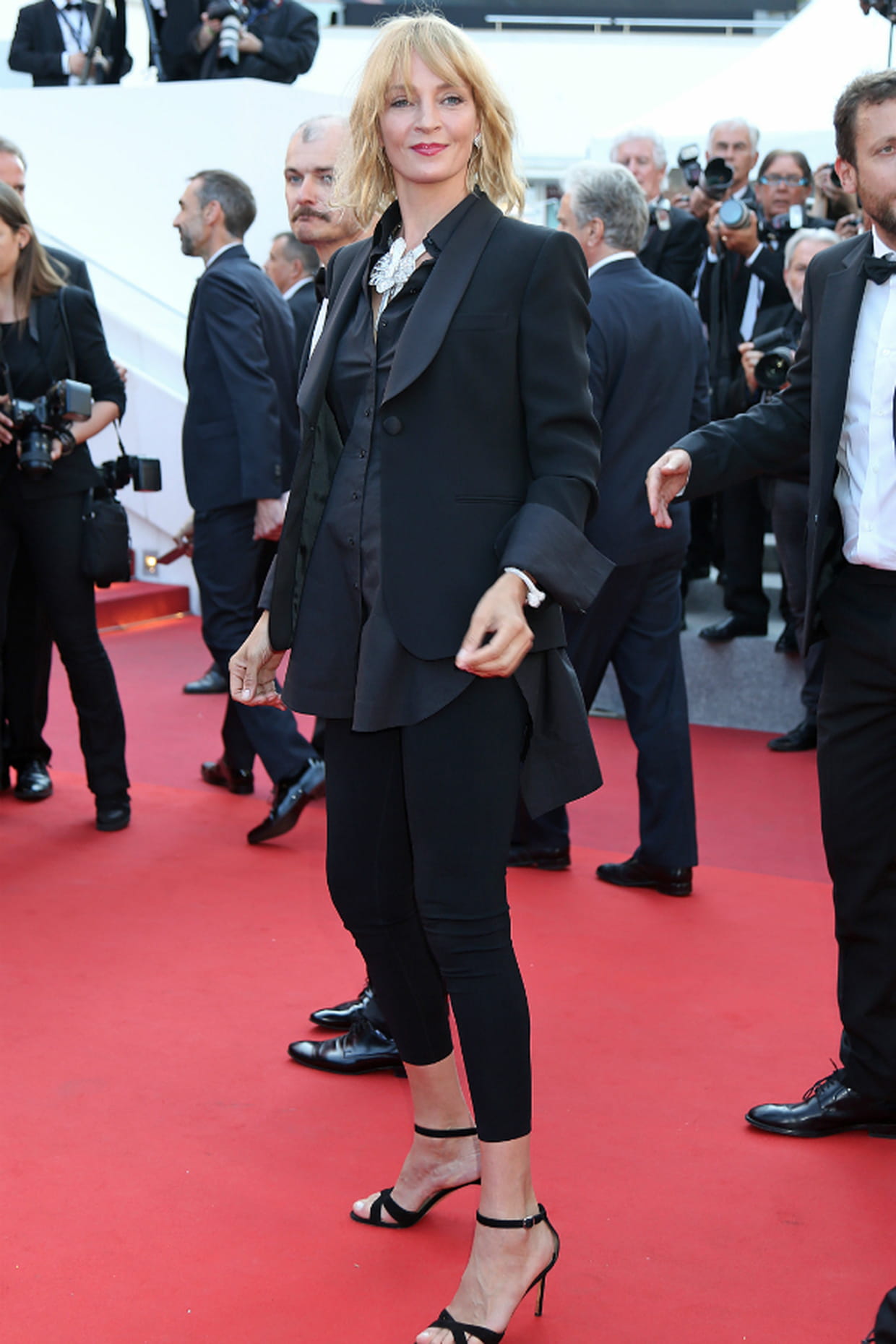 Uma Thurman en smoking noir