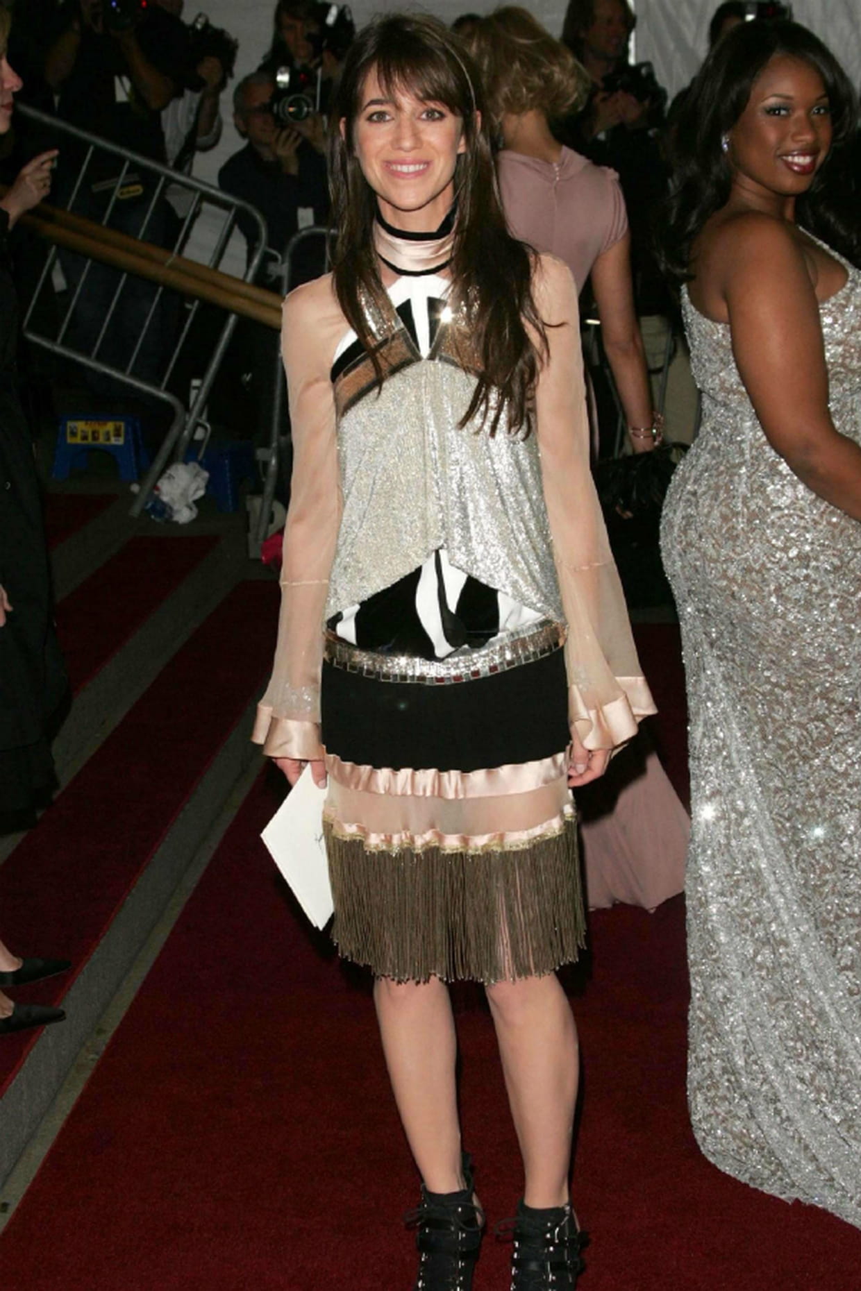 Charlotte Gainsbourg en robe mi-longue à franges Balenciaga au Met Gala à New York le 7 mai 2007.