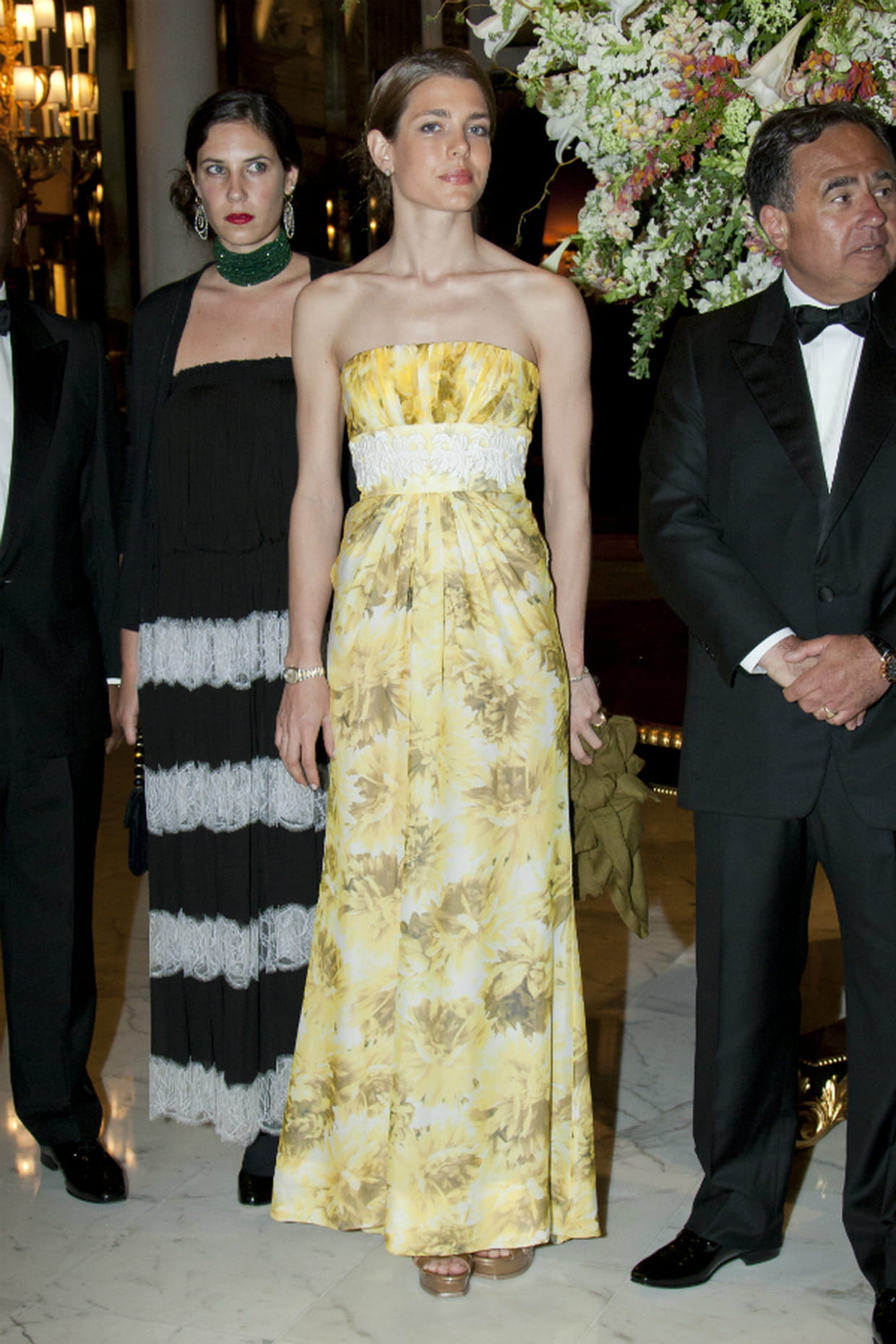 Charlotte Casiraghi en robe imprimée tournesol Giambattista Valli au gala de l'Amade à Monaco le 7 avril 2011.