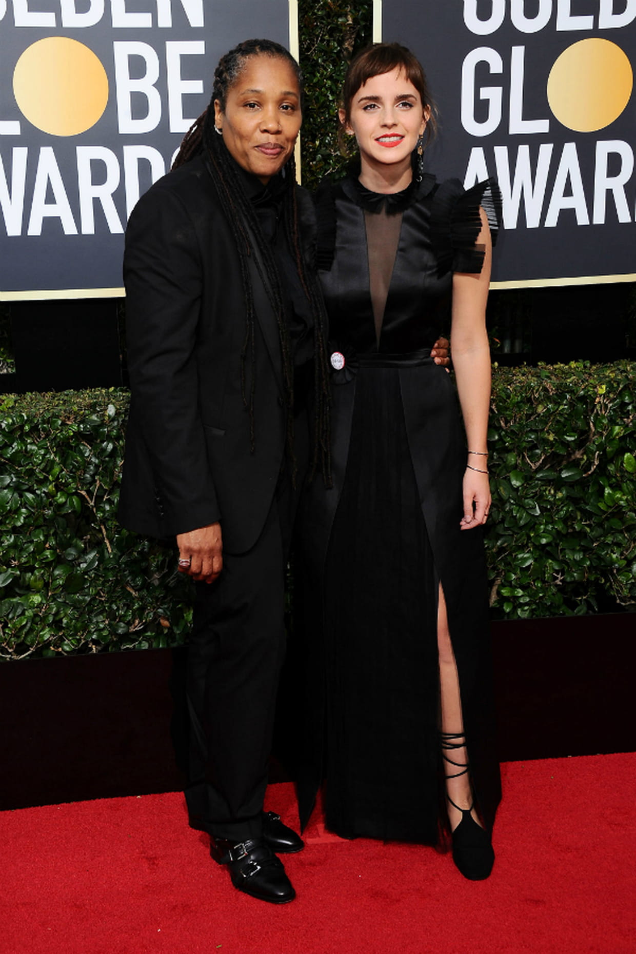 L'activiste Marai Larasi et Emma Watson en robe Ronald van der Kemp