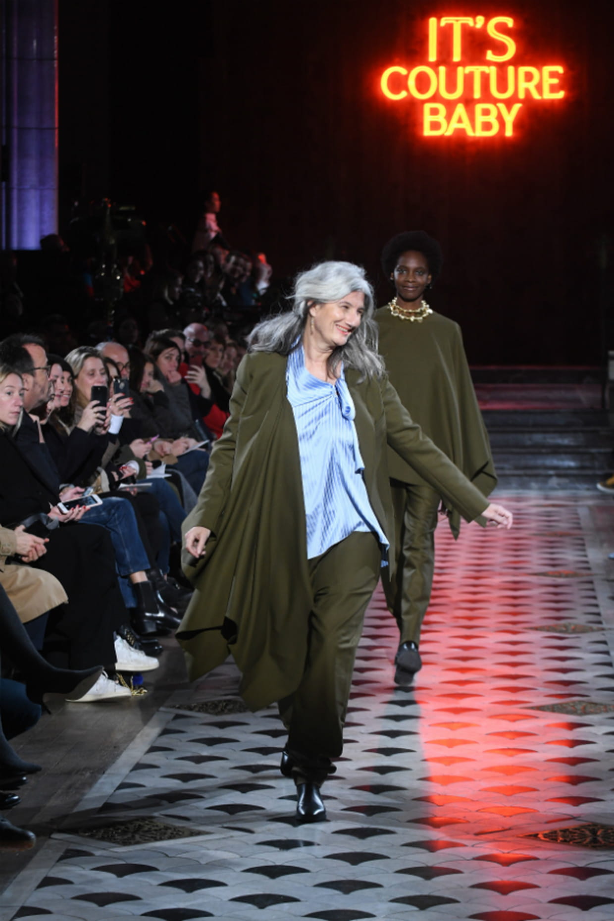 La journaliste et auteure Sophie Fontanel sur le catwalk du défilé Rabih Kayrouz haute couture
