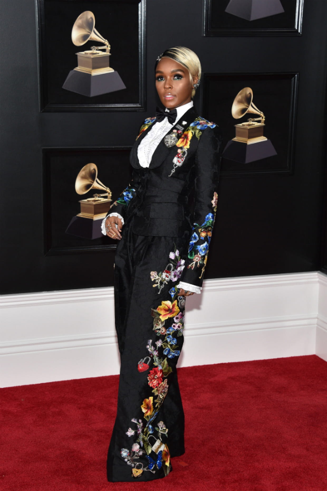 Janelle Monáe en smoking avec broderies fleuries et nœud papillon signé Dolce & Gabbana