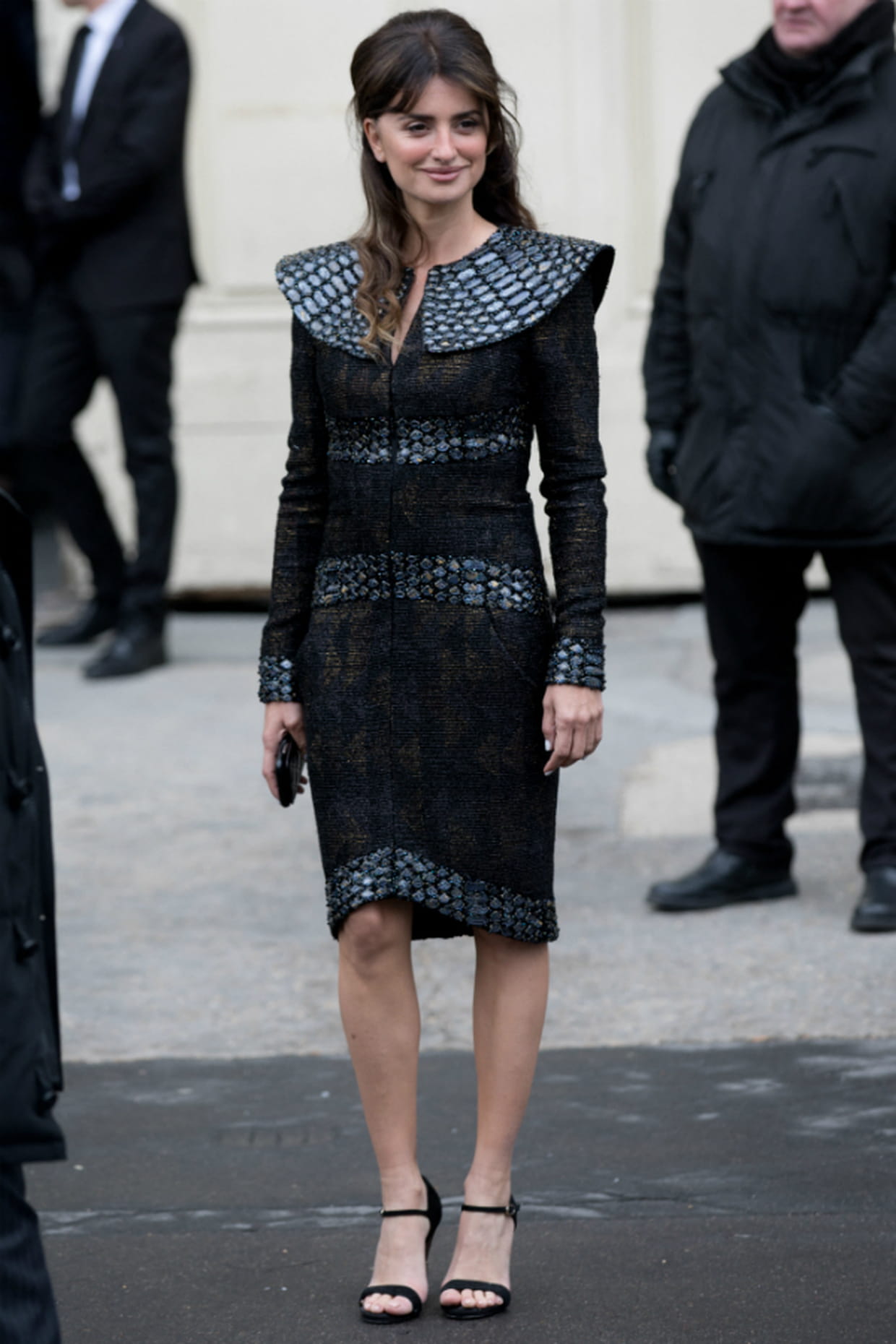 Penélope Cruz en robe midi noire structurée Chanel