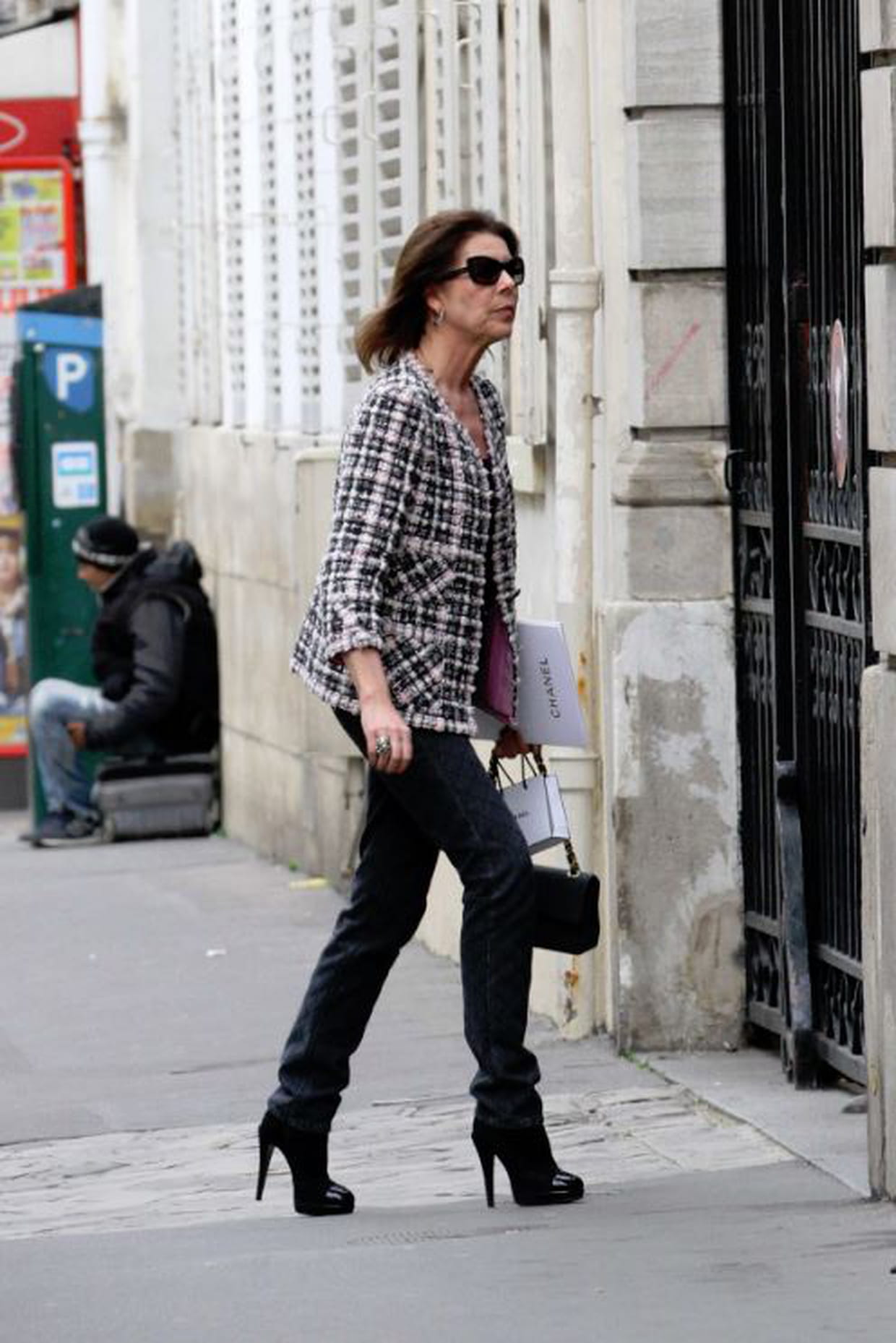 Caroline de Monaco en veste en tweed au défilé Chanel lors de la fashion week automne-hiver 2013-2014 à Paris le 5 mars 2013.
