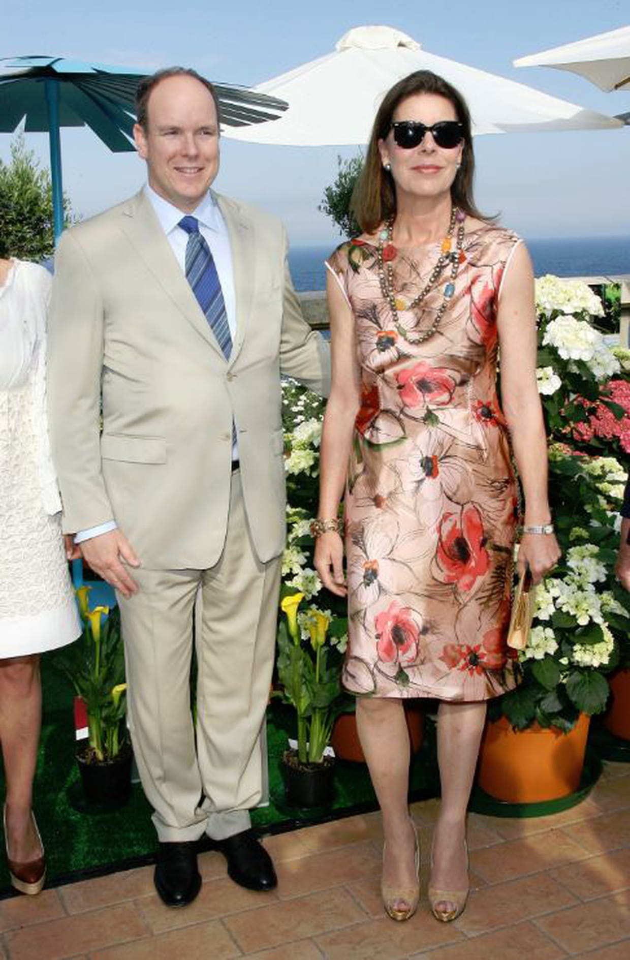 Caroline de Monaco en robe jacquard avec Albert II au 42ème concours international de bouquets sur les terrasses du casino de Monte-Carlo à Monaco le 9 mai 2009.