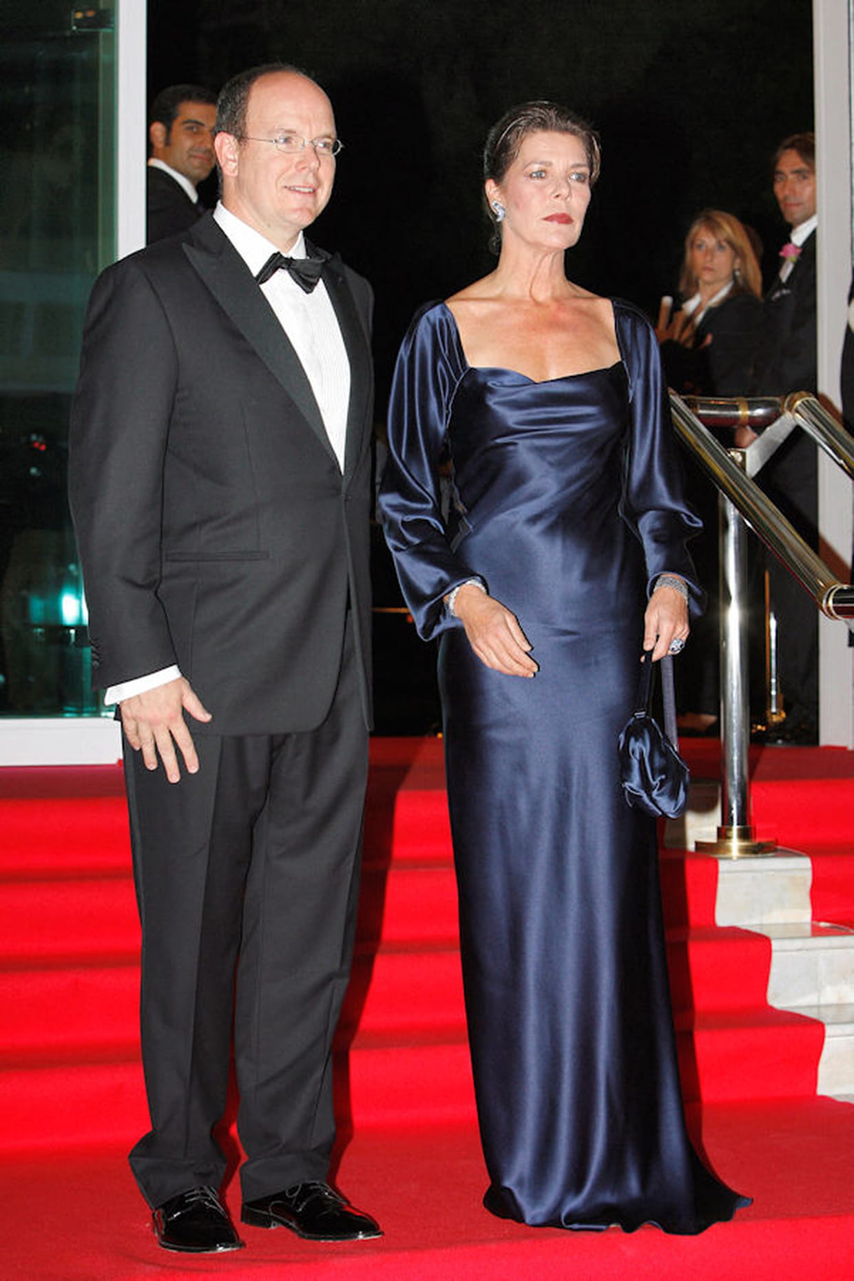 Caroline de Monaco en robe satinée bleu marine