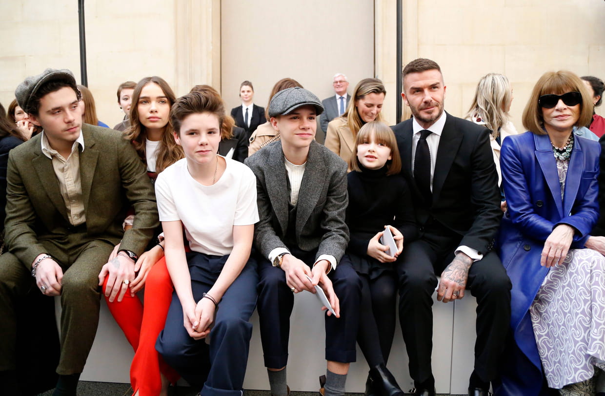 La famille Beckham et Anna Wintour au défilé Victoria Beckham automne-hiver 2019-2020 à Londres le 17 février 2019