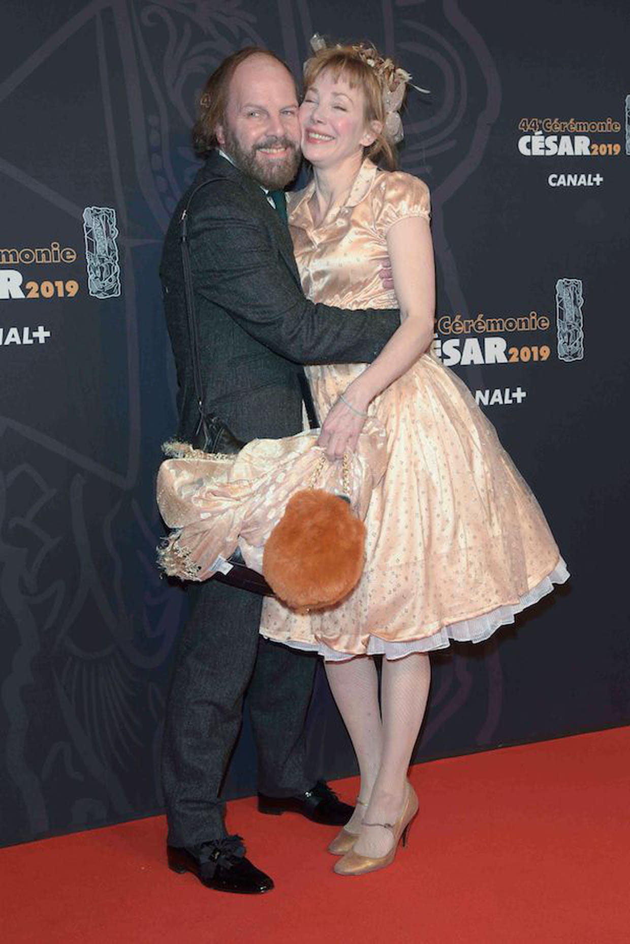 Julie Depardieu à la 44ème cérémonie des César le vendredi 22 février 2019, vêtue d'une robe à l'inspiration rétro, accompagnée de Philippe Katerine.