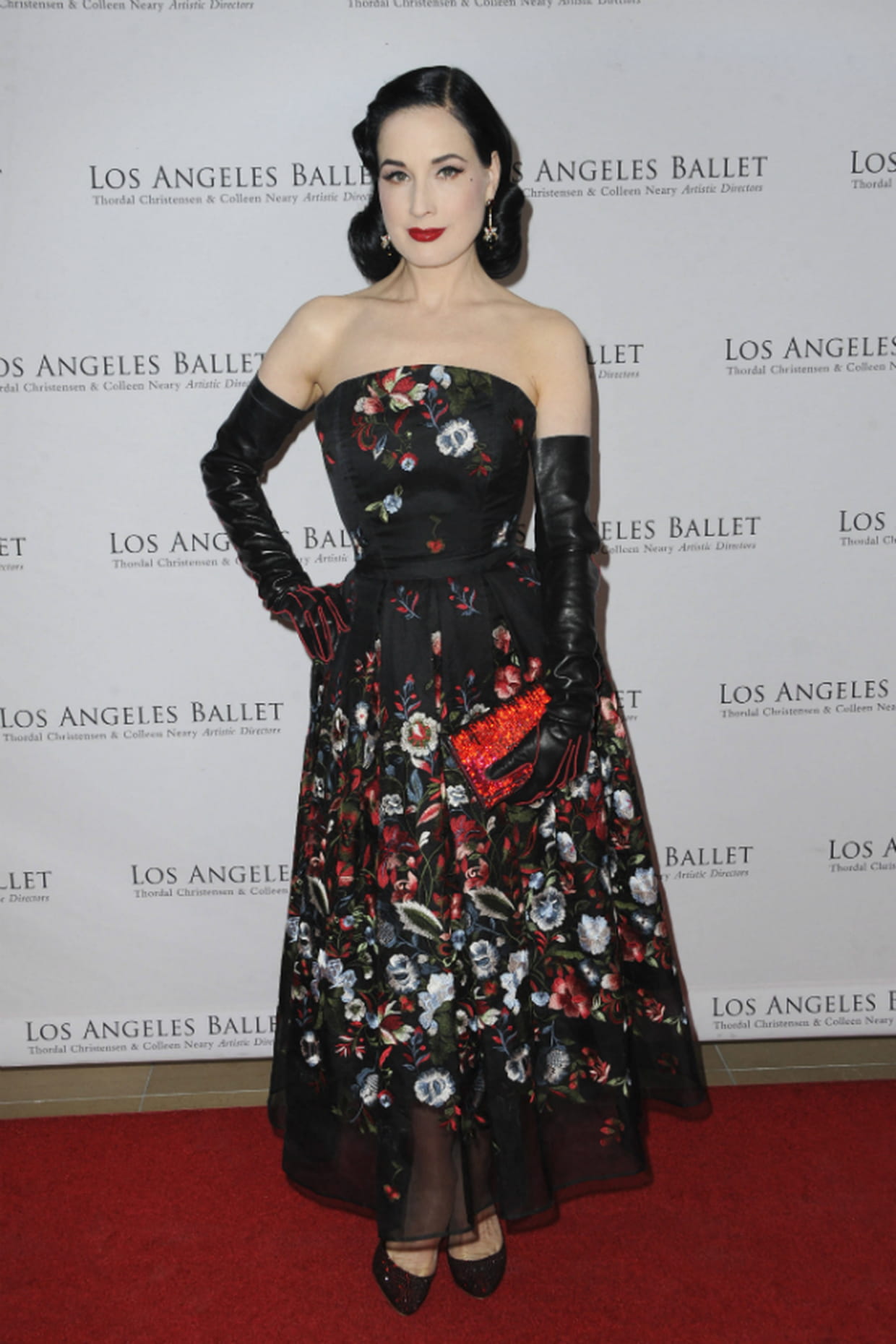 Dita Von Teese en robe bustier imprimée au gala donné par le Ballet de Los Angeles le 12 avril 2019