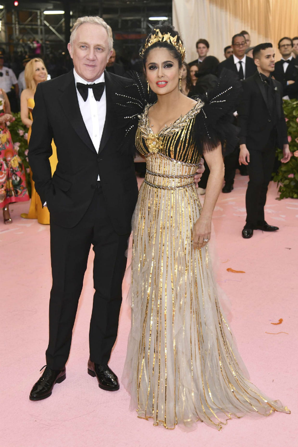 Salma Hayek en Gucci et François-Henri Pinault au MET Gala 2019 à New York le 6 mai 2019.