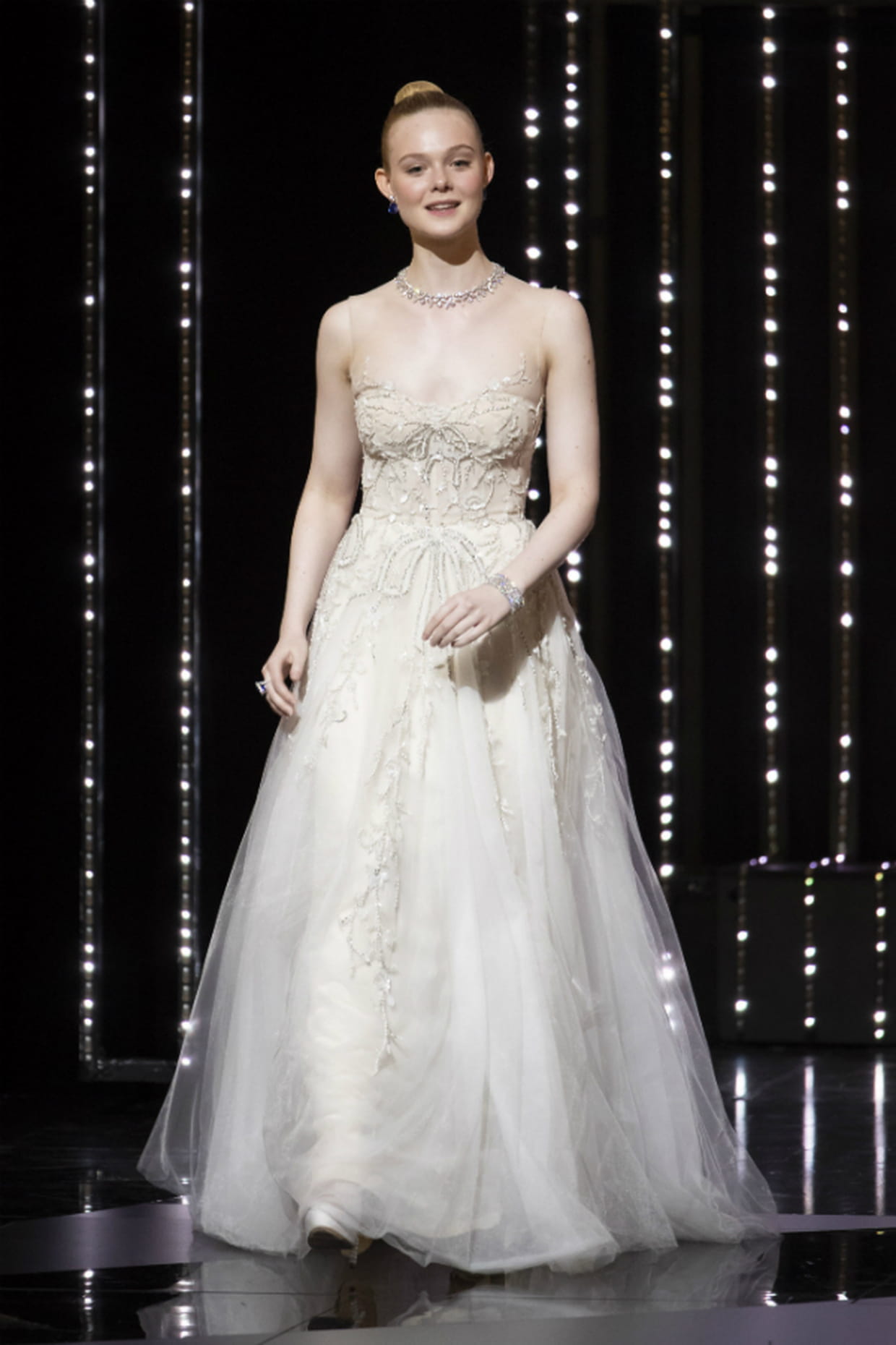 Elle Fanning en Reem Acra pour la cérémonie de clôture du Festival de Cannes le 25 mai 2019