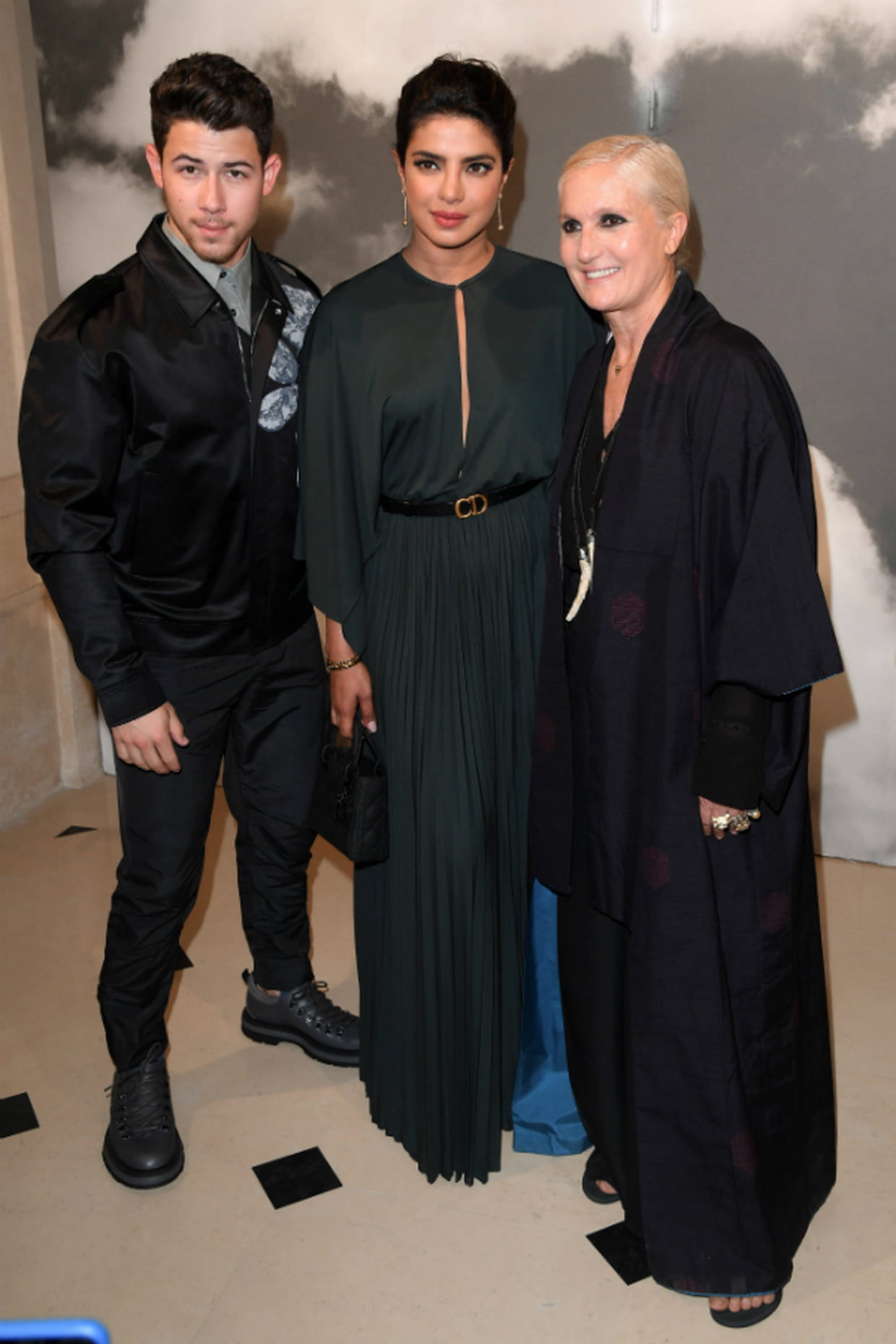 Priyanka Chopra, Nick Jonas et Maria Grazia Chiuri au défilé Christian Dior