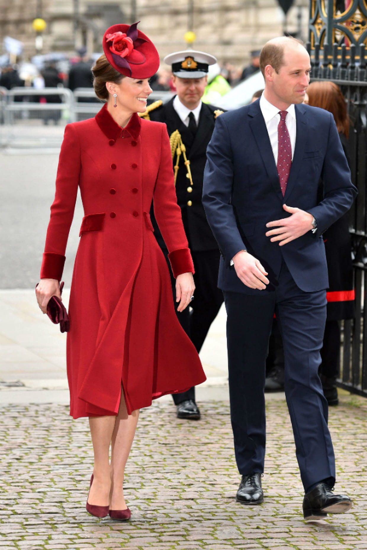 Kate Middleton en manteau Catherine Walker au Commonwealth day service à Londres le 9 mars 2020