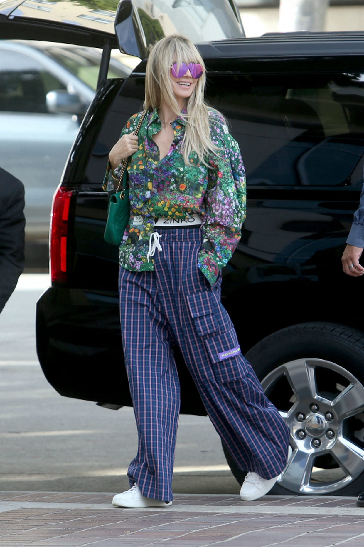 Heidi Klum en mélange d'imprimés avant un tournage le 5 mars 2020 à Los Angeles