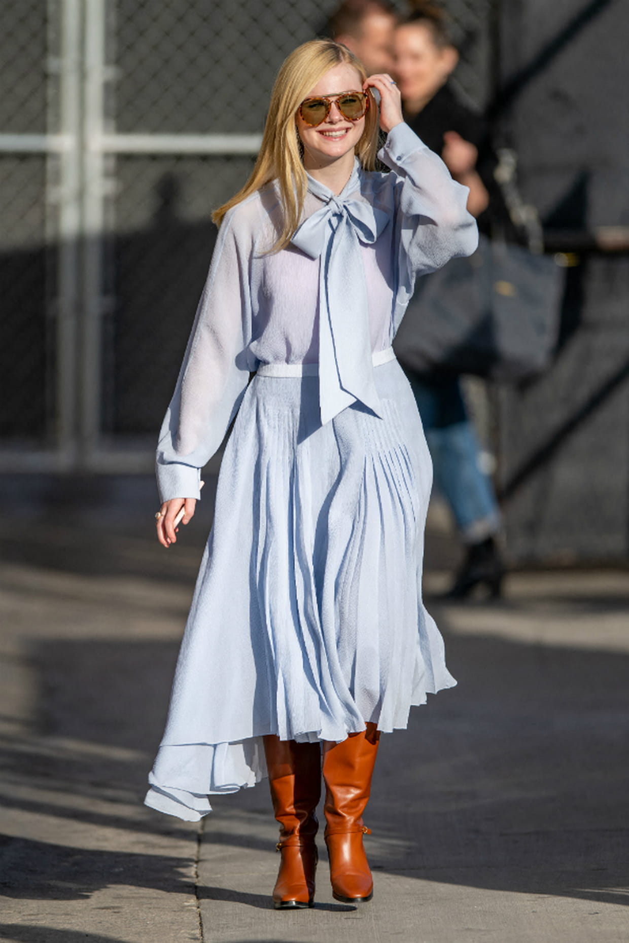 Elle Fanning en robe chemise au Jimmy Kimmel live le 4 mars 2020 à Los Angeles